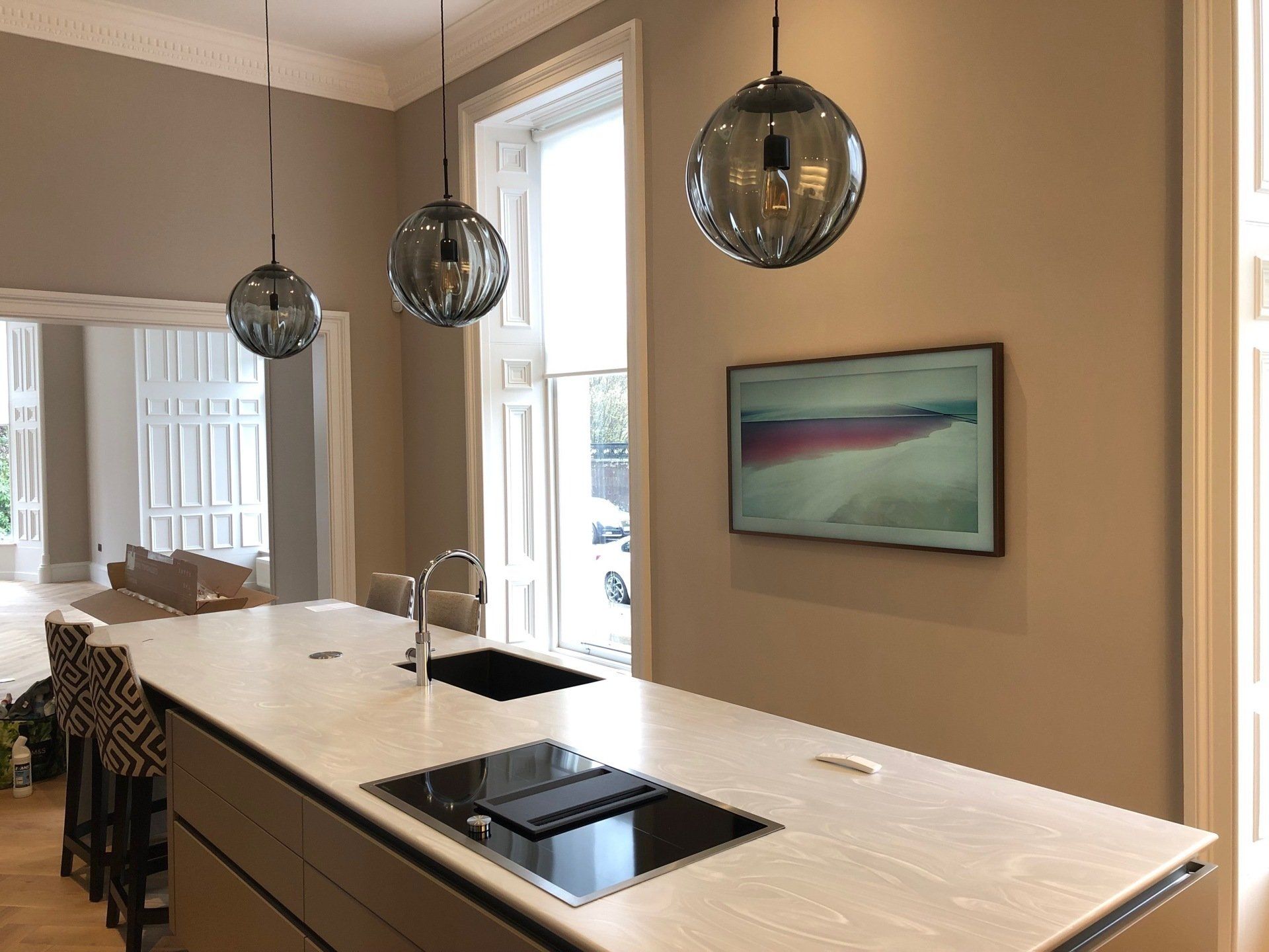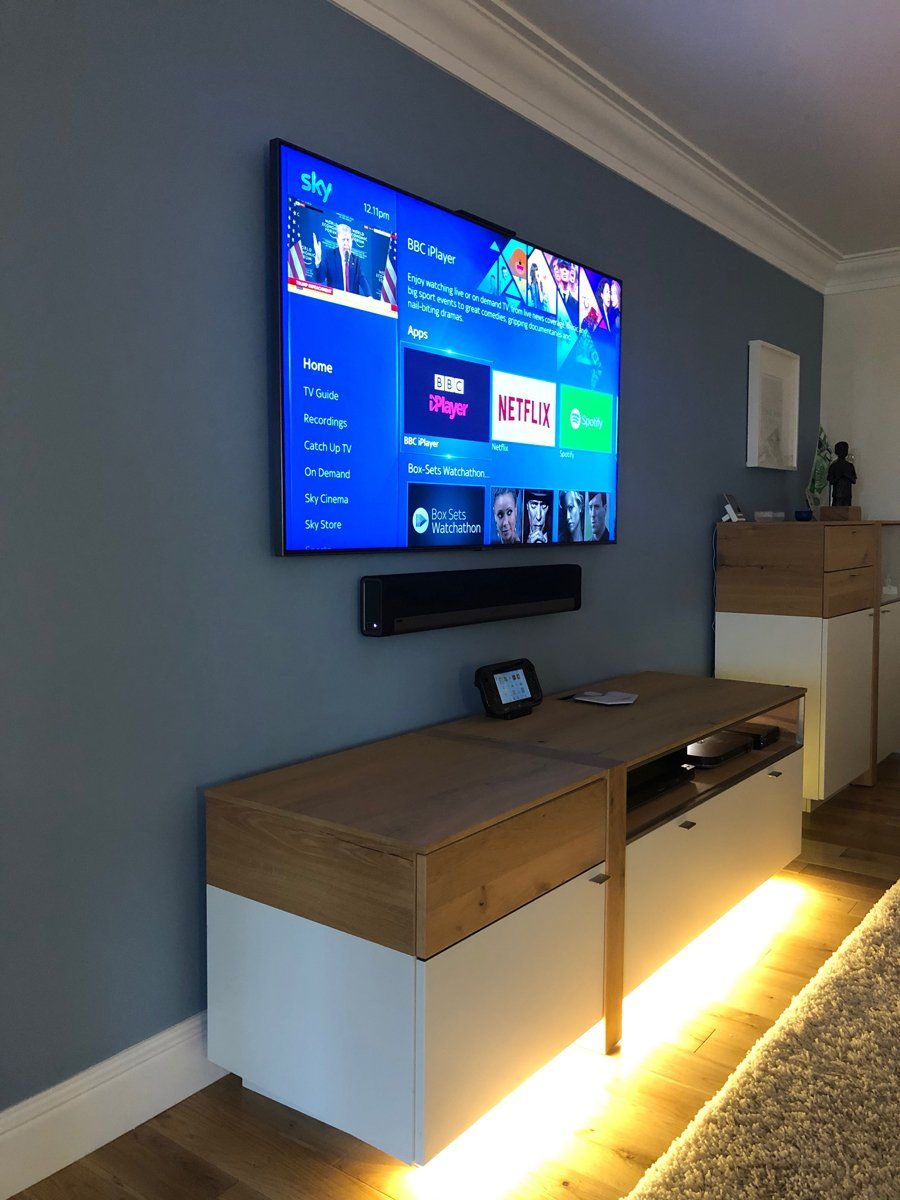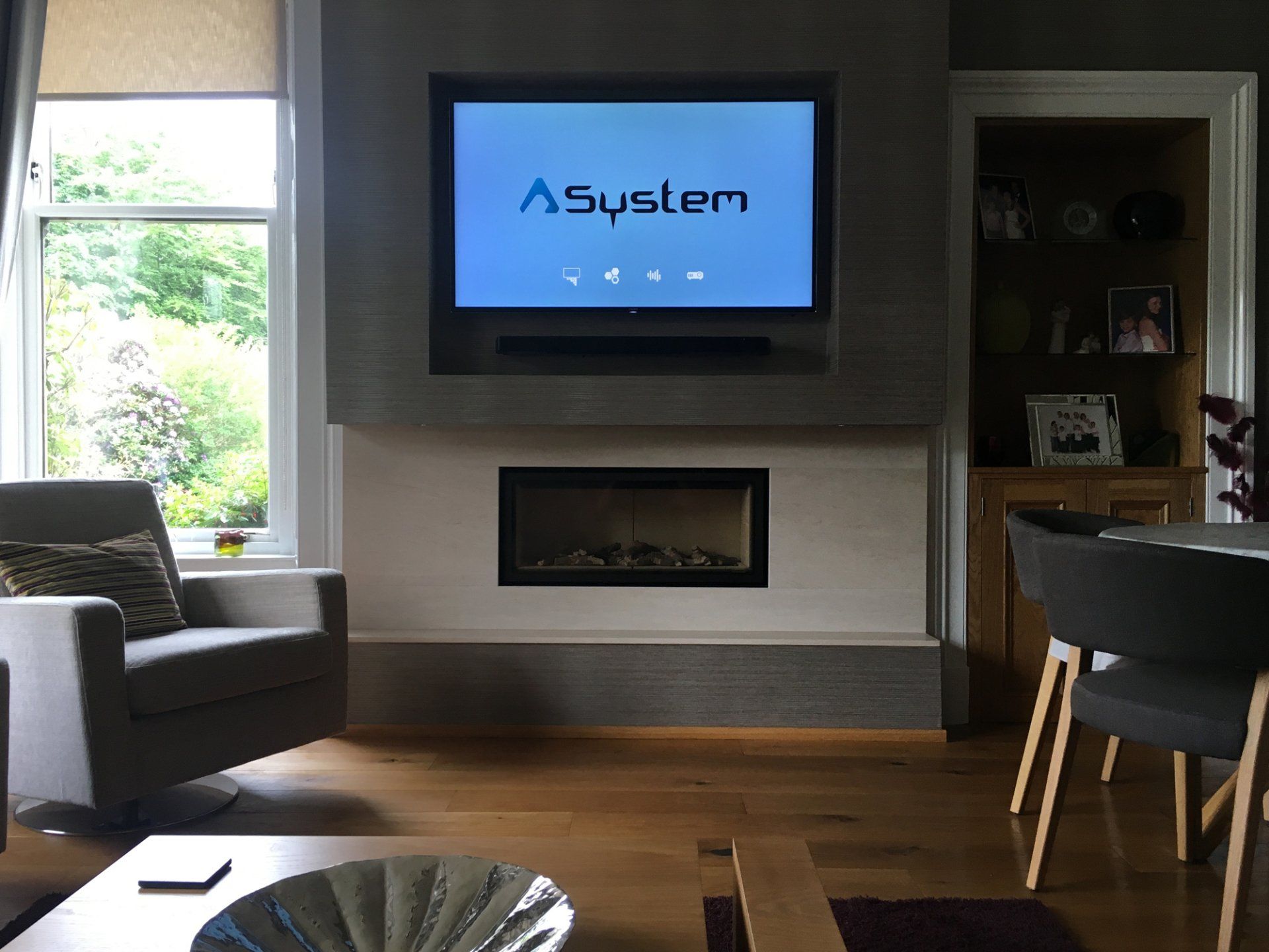 System Home specialize in concealed cable TV installations on all wall types. Plasterboard, brick, chimney breasts, above fireplaces or in awkward corners...it's no problem, we are the longest established TV wall mount business in Scotland. We can also supply and install "floating" wall units as shown.